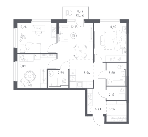Отделка выполнена из акриловой «камешковой» штукатурки и микса гладкого серого, белого и фактурного черного и графитового кирпича, на балконах панорамное остекление.