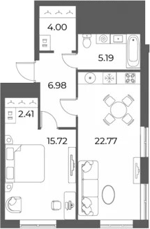 Сдан 1, 2 комнаты от 22.72 до 101.07 м2 от 5,7 до 35,5 млн. руб