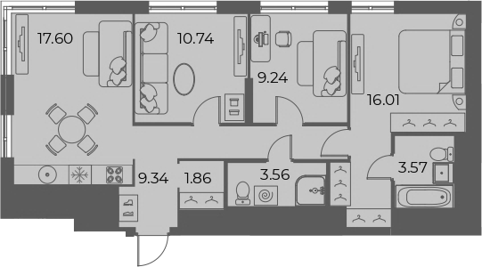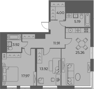 сдача 4 квартал 2026 1, 2, 3 комнаты от 34.24 до 92.28 м2 от 4,9 до 9,9 млн. руб