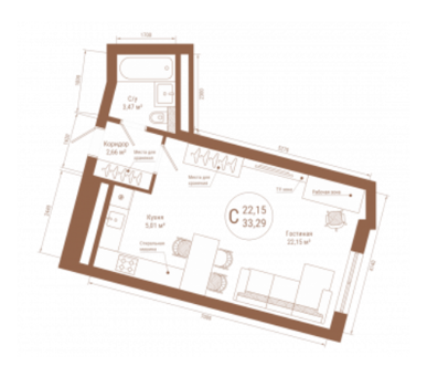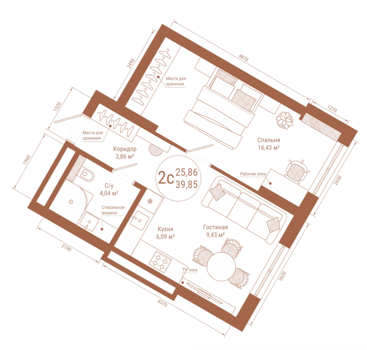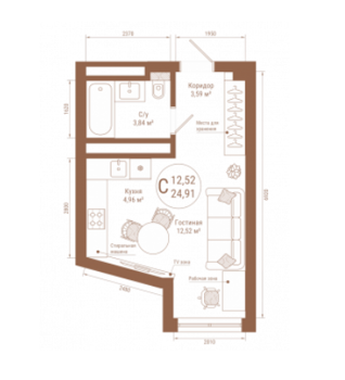 Площадь от 24.91 м2