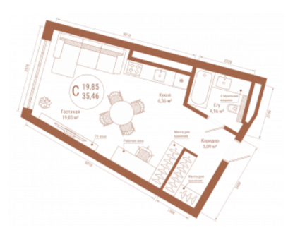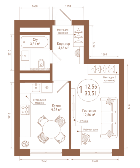 Площадь от 30.51 м2