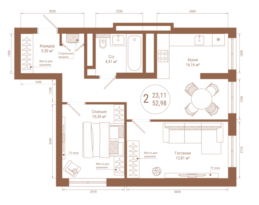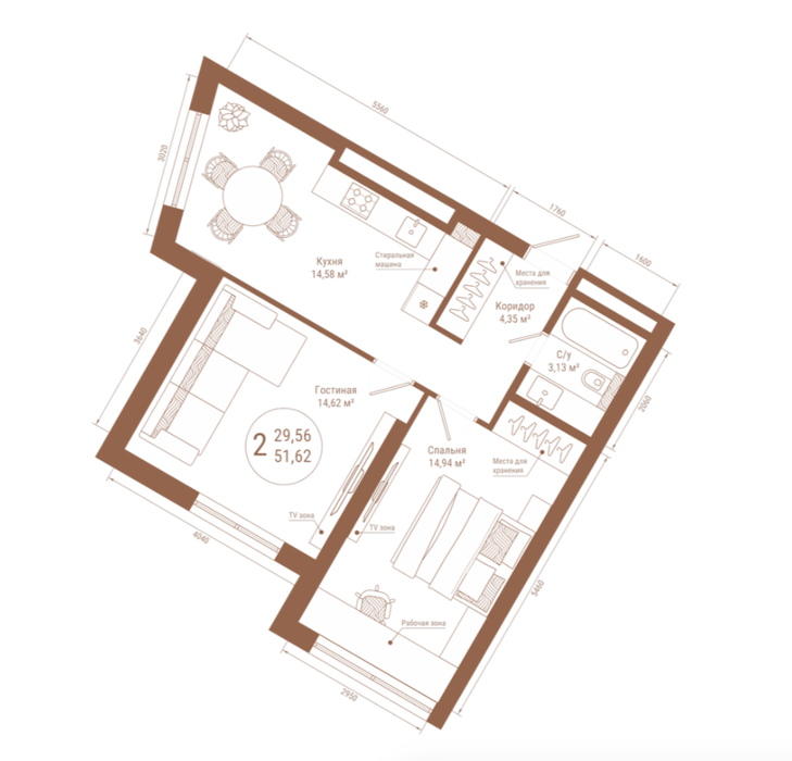 Площадь от 51.62 м2