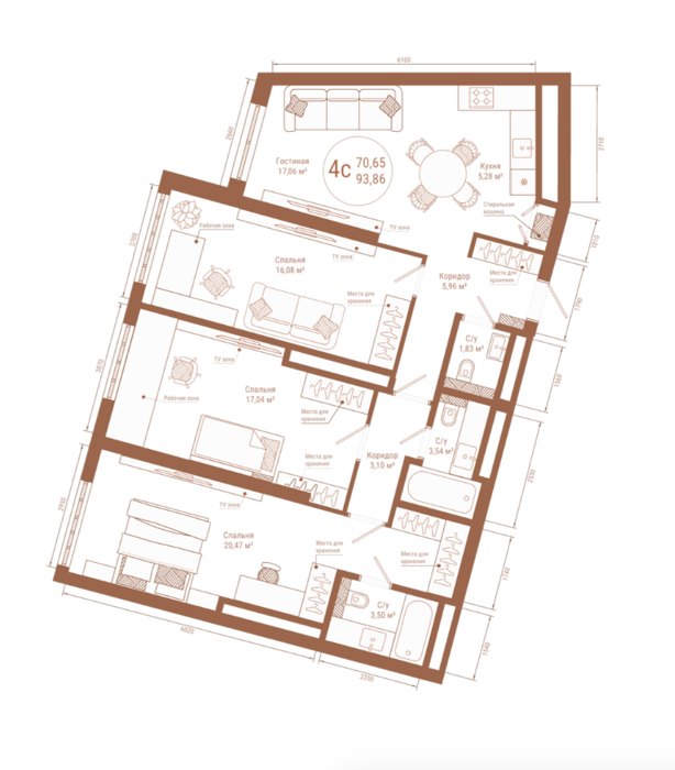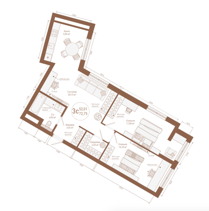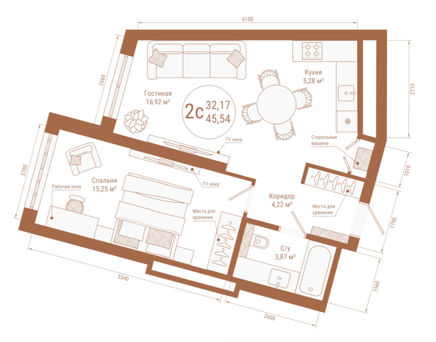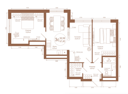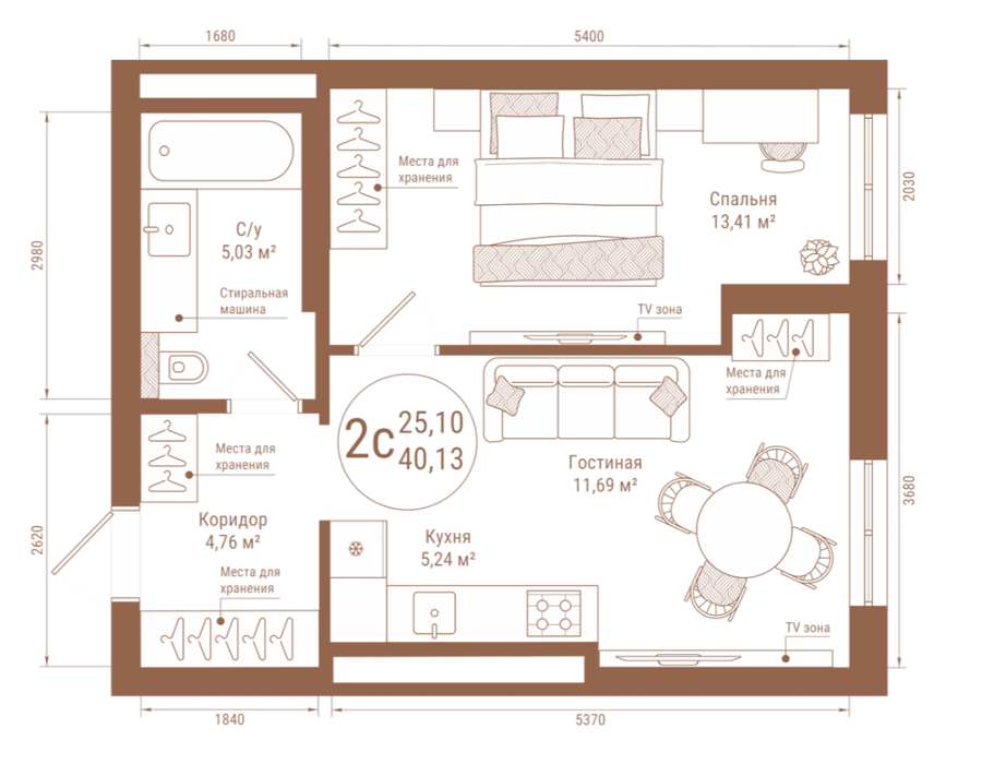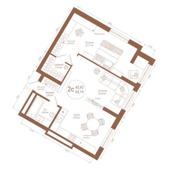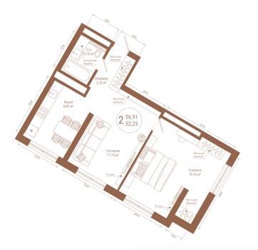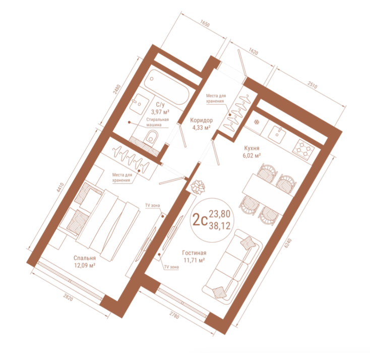 Площадь от 38.12 м2
