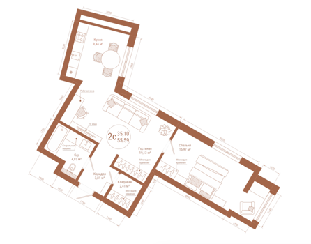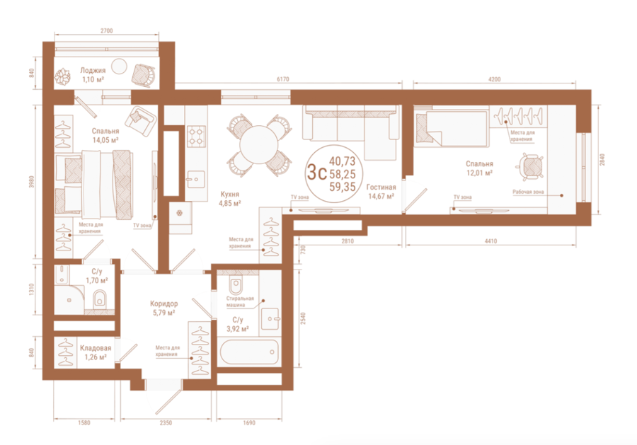 Площадь от 59.35 м2
