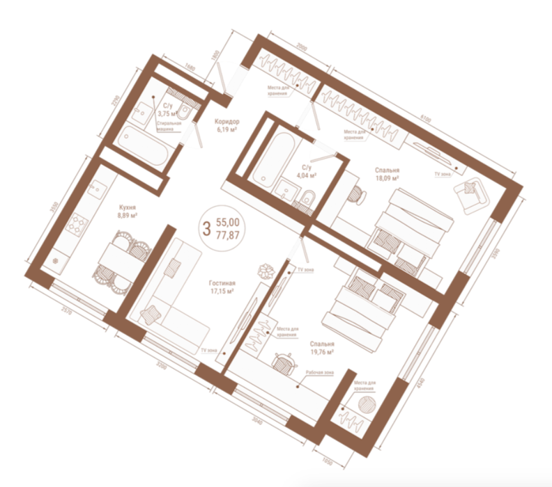 Площадь от 77.87 м2
