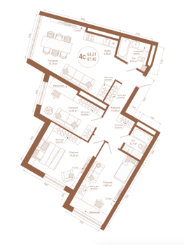 Площадь от 87.42 м2