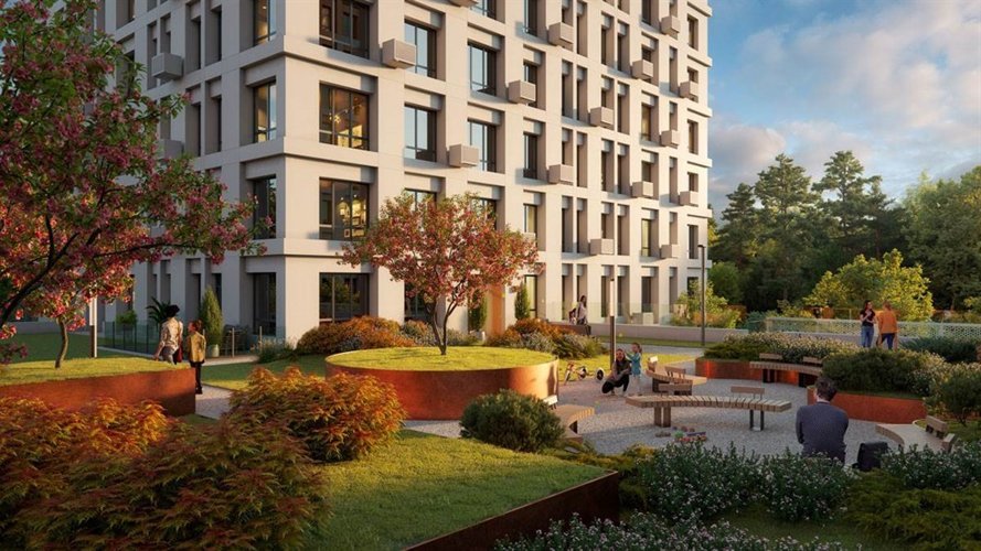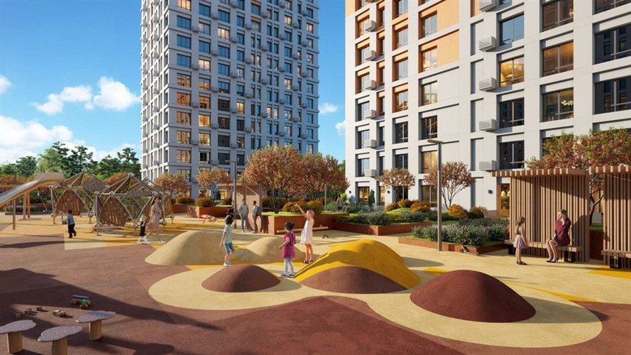 Внутренняя территория комплекса разбита на зоны, которые плавно перетекают друг в друга и предлагают огромное разнообразие активностей. Двор закрыт от посторонних, без доступа машин.Собственный парк с прогулочными маршрутами, лаундж-зоной и террасами для медитаций и занятий йогой. Есть площадь для проведения праздников, где вы сможете организовывать мероприятия вместе с соседями. Столы для настольного тенниса и скалодром, workout-зона, беговой маршрут и мультифункциональная площадка.