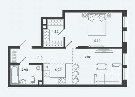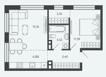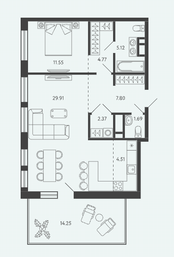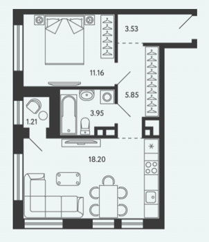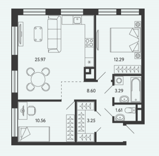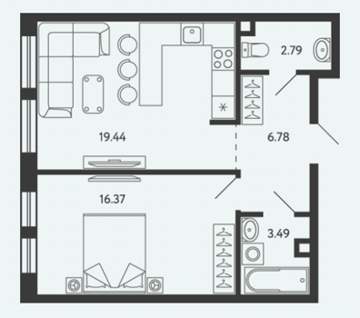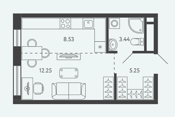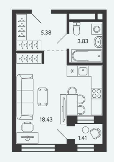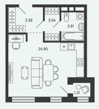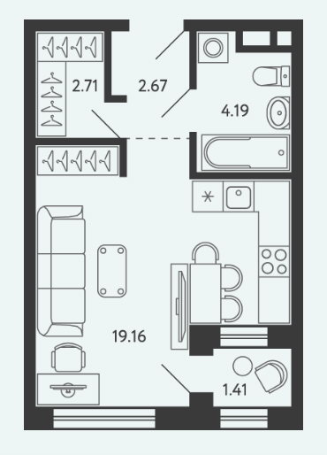 Площадь от 28.34 м2
