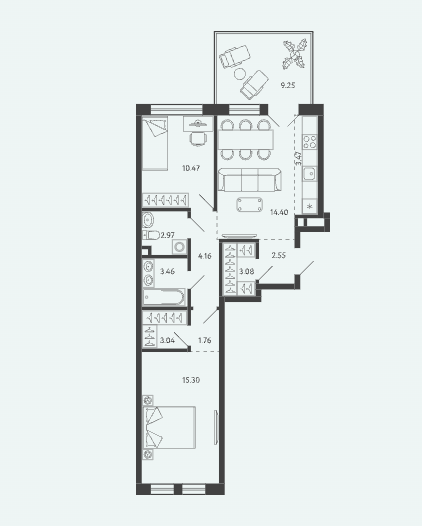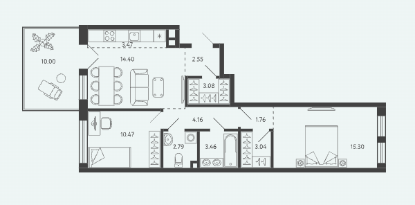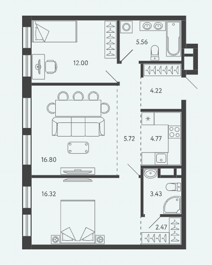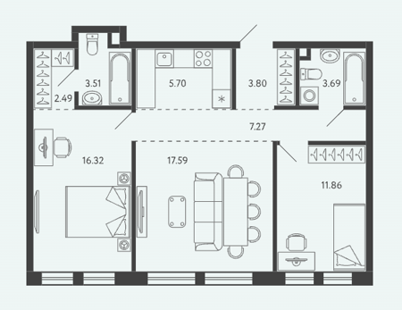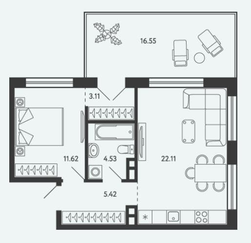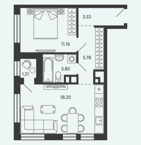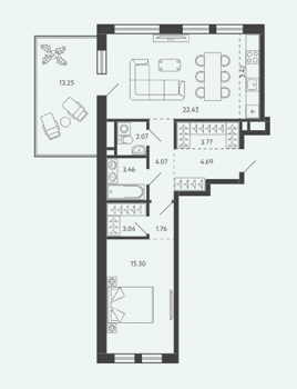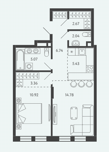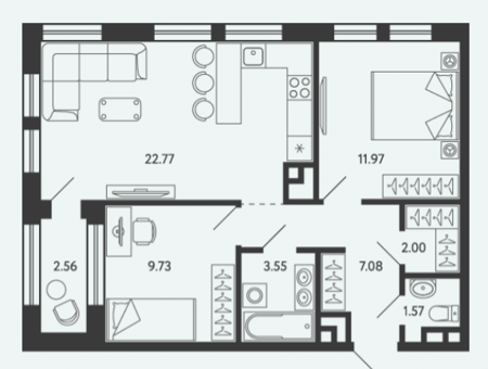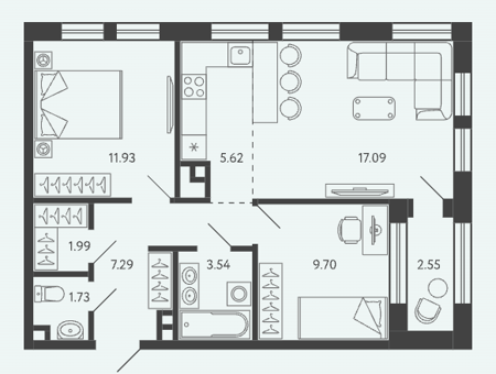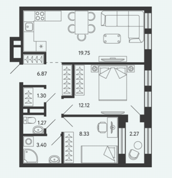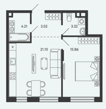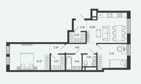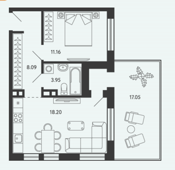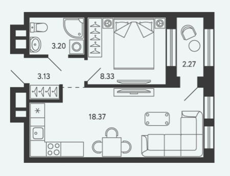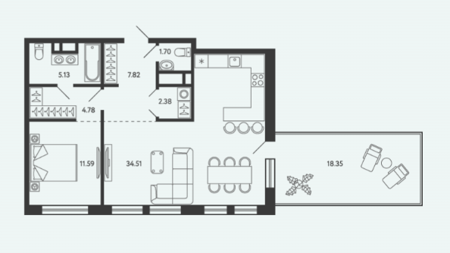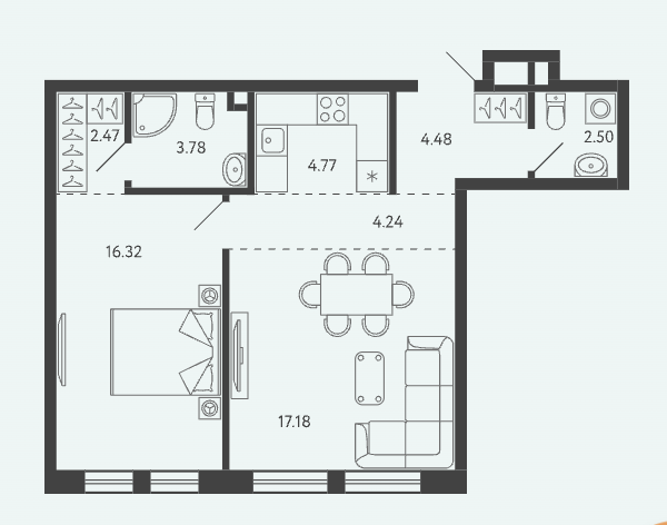 Площадь от 34.17 м2